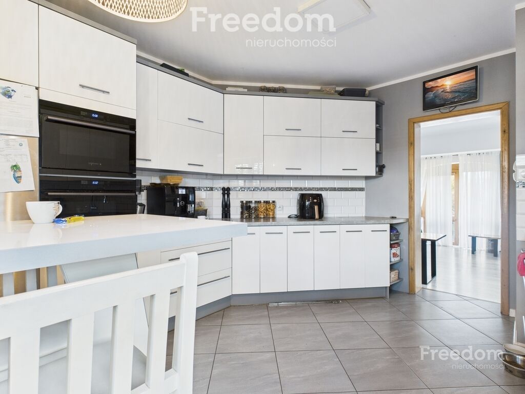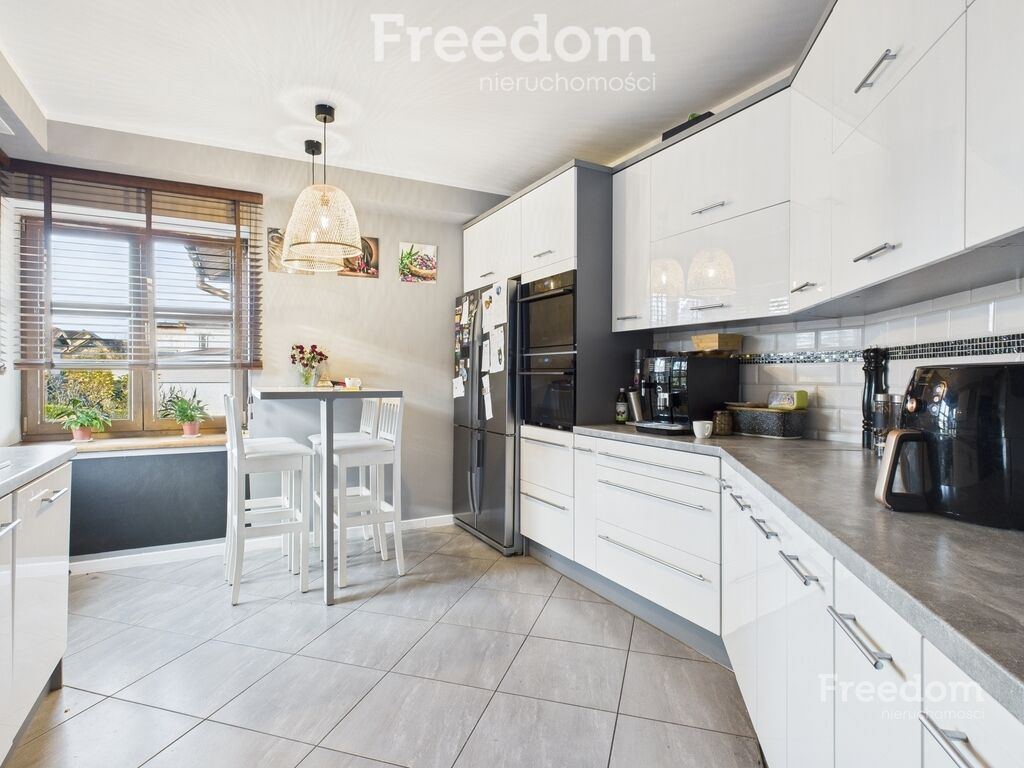 - Kuchnia otwarta na salon i jadalnię, z narożnym oknem i